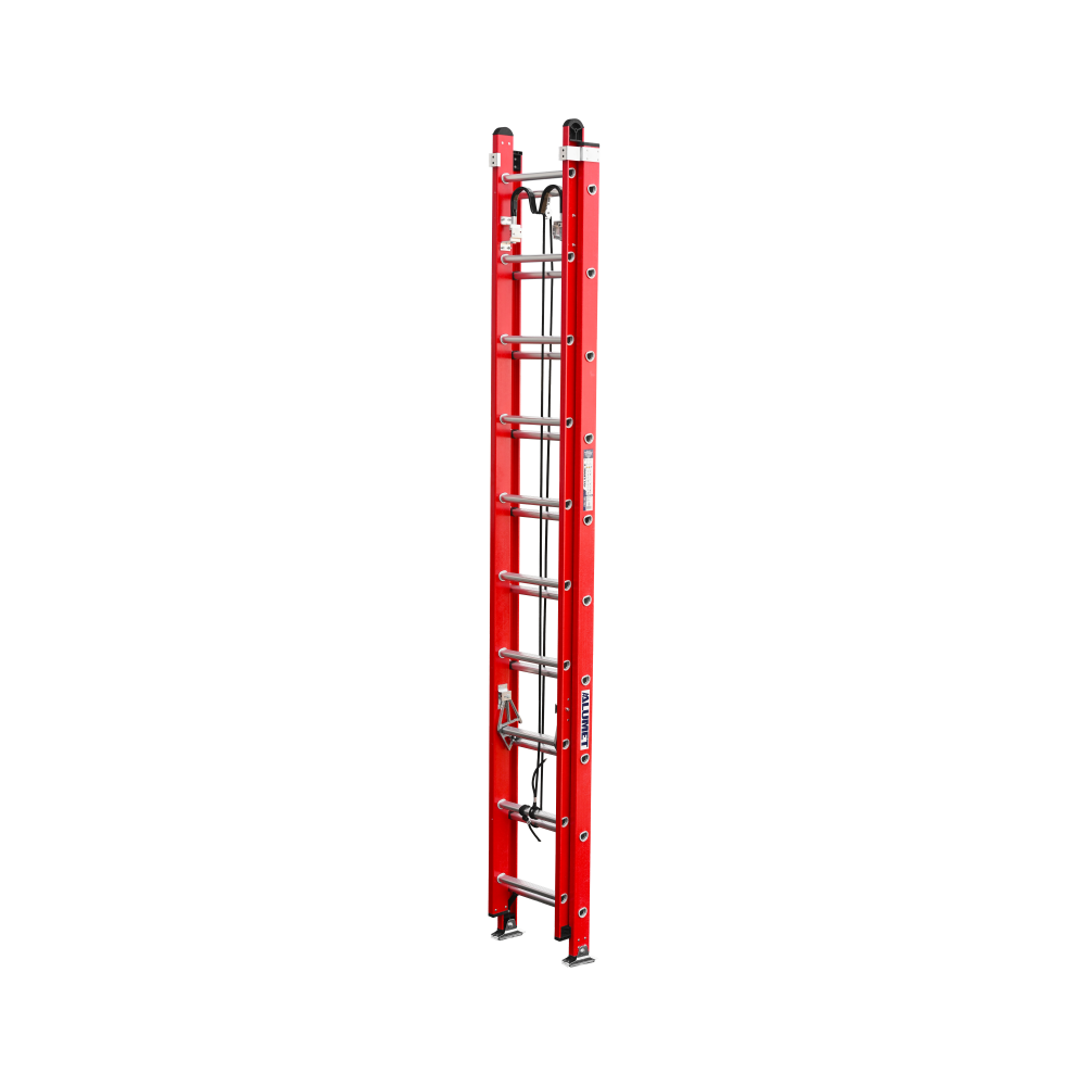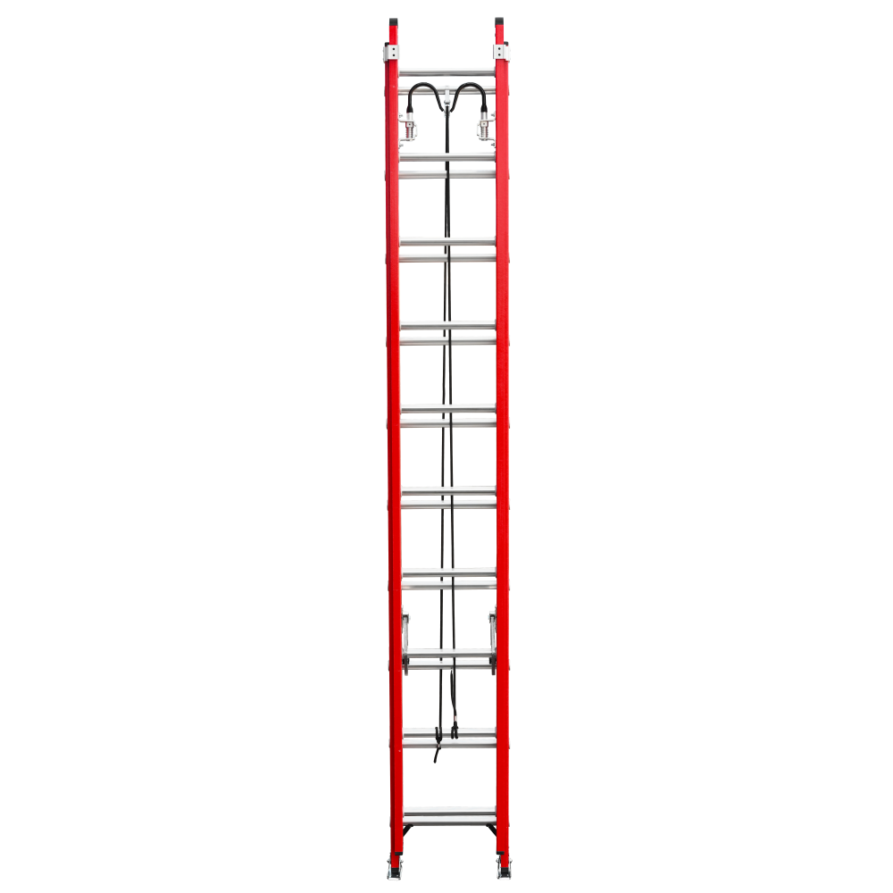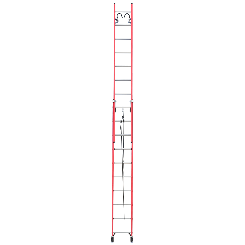 Стеклопластиковая приставная двухсекционная лестница с канатной тягой и крюками