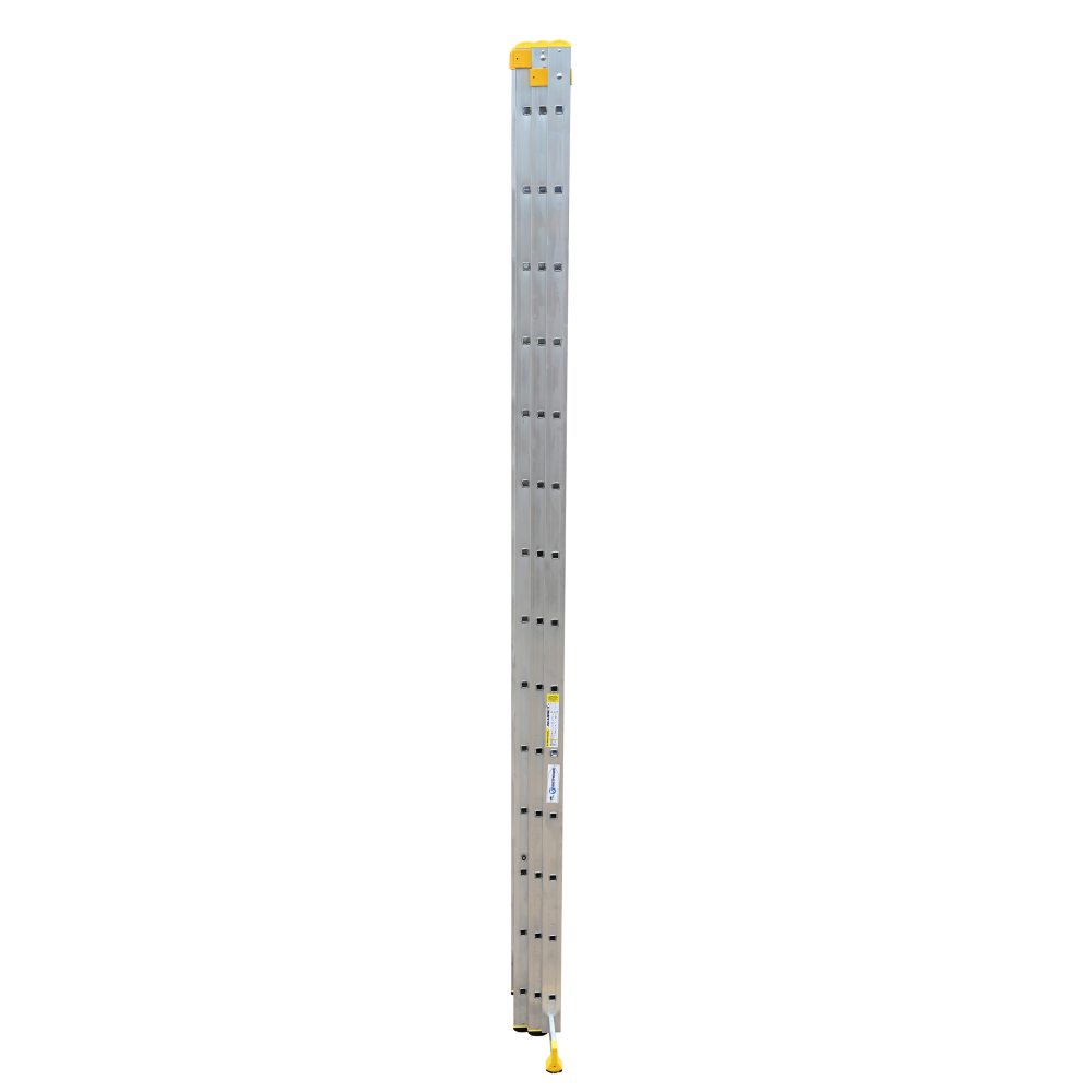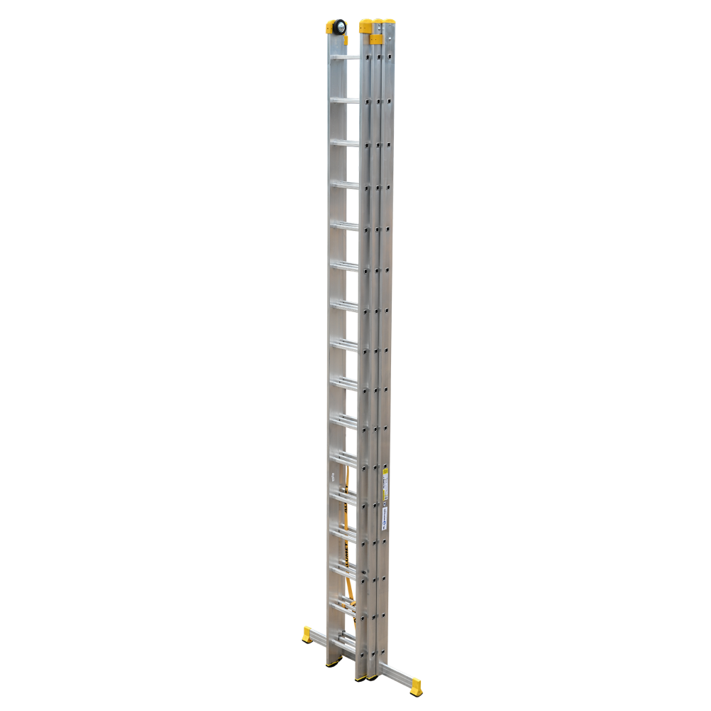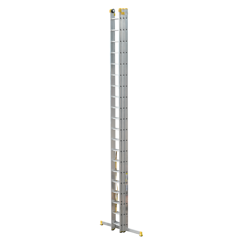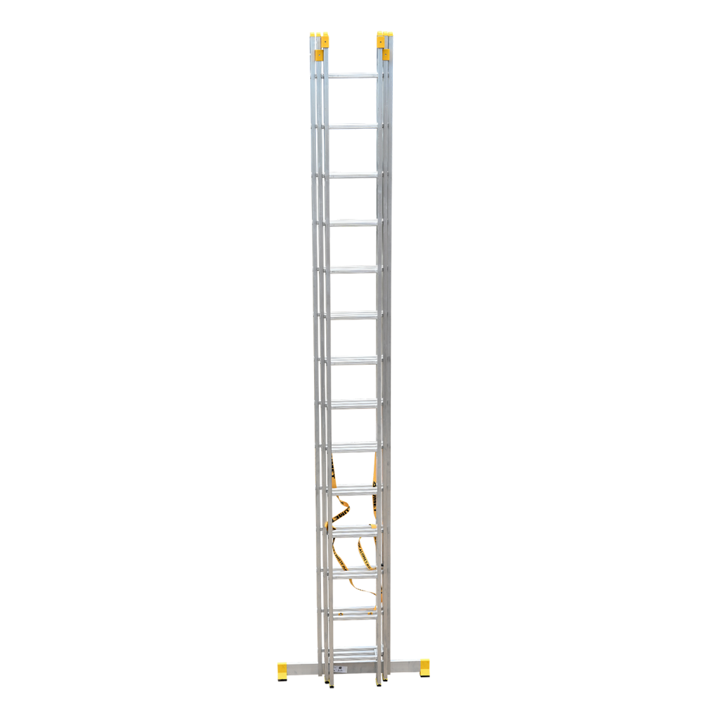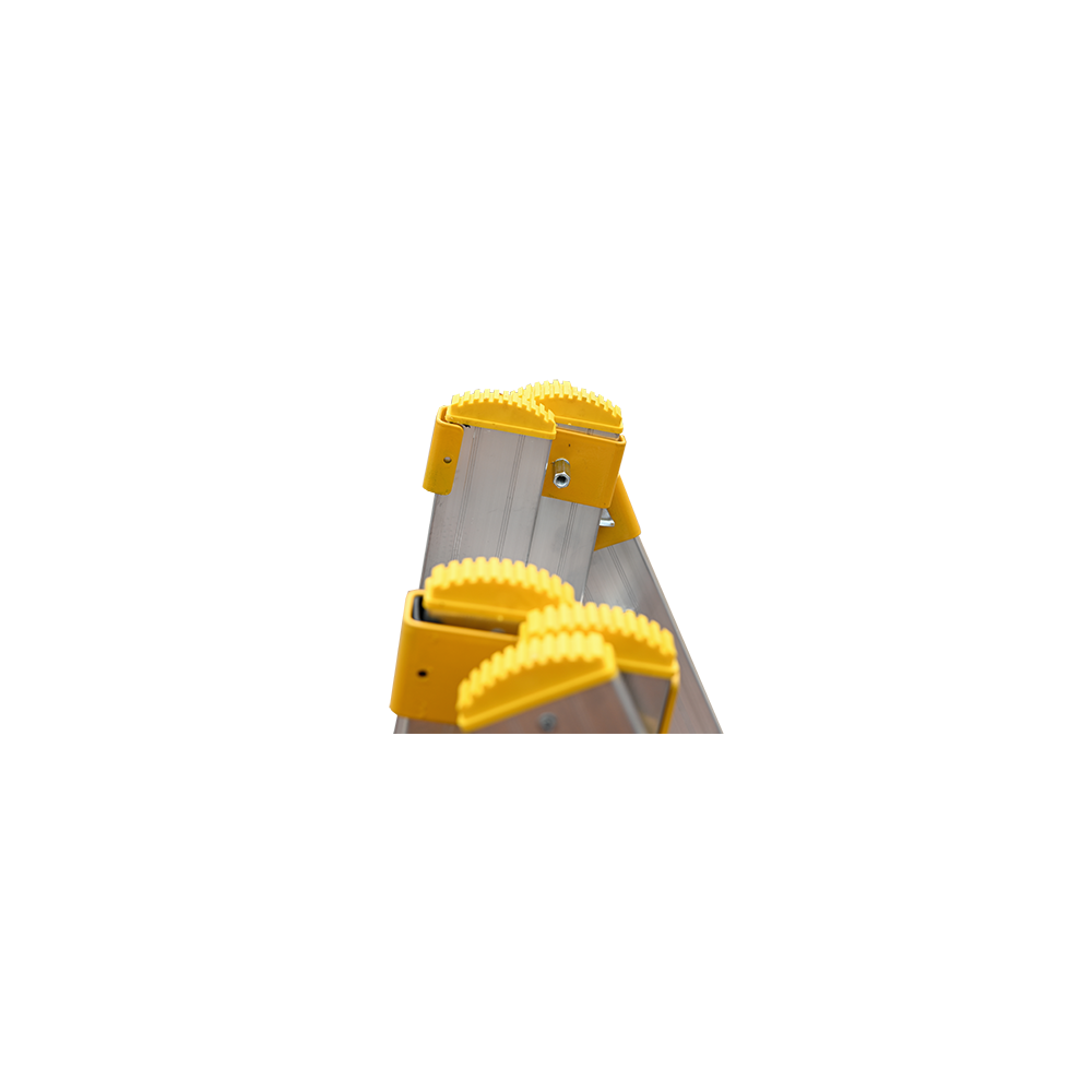 Универсальность данной лестницы заключается в том, что она может использоваться как раздвижная приставная лестница из трех частей и как свободностоящая стремянка (перевернутая русская буква «У»). Более того третья секция является съемной, и ею можно пользоваться отдельно как приставной лестницей, а оставшаяся часть при этом представляет двухсекционную универсальную лестницу. Эта лестница является по праву наиболее универсальной из всех лестниц, и несмотря на необходимый попарный перехлест секций как в положении «приставная лестница» так и в положении «стремянка», что усложняет, утяжеляет и поэтому удорожает ее, является самой популярной по продаваемости из-за своей исключительной универсальности.
